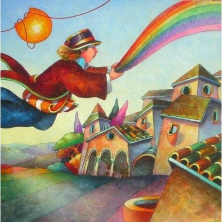 Il messaggio di questo excursus è chiaro e irrefrenabile: ogni sogno nel cassetto deve essere realizzato, per amore della nostra vita. Così questo sogno permea tutta la creazione pittorica di Francesco, la dimensione toscana è congeniale, le colline morbide arcobaleniche sono un humus essenziale. Da questo terreno così ben fecondato, nasce un albero fantastico da dove si diramano personaggi tra il trasognato e l’ironico, volanti e svolazzanti, colori vivaci e movimentati, colline, sogni, venti e tutto ciò che compone l’atmosfera nesiana.